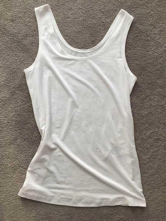 這件白坦克質料薄、會透光,優點是視覺效果輕盈、性感,缺點是肉肉、小腹一覽無遺,別擔心,加上外套和高腰裙OR褲的搭配,就能克服。giordano ladies1*5,開岔白裙穿一週,沒問題!