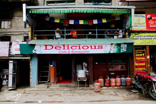 辦好入山証,我們在回旅店的路上經過一家「Delicious Food」的餐廳,那是一家可以坐在小陽台,看看街上路人的小店。我憑直覺感覺應該不錯,於是就拉了老劉上去吃了。