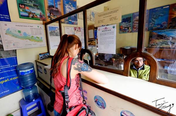 一路從杜巴廣場走到旅客中心,大概也走了一個多小時。這時的加德滿都雖然空氣品質不佳,但幸好不會太熱,讓我們這一個多小時走得很輕鬆。尤其旅客中心真是個好地方,有茶水、咖啡還有果汁,環境也非常清幽,辦好證我們還在裡面待了一會。不過幸好我們有趕上他們的工作時間,因為好像再過不久他們就要下班了。只能說他們的工作時數真短啊!尼泊爾真是個悠哉的國家。