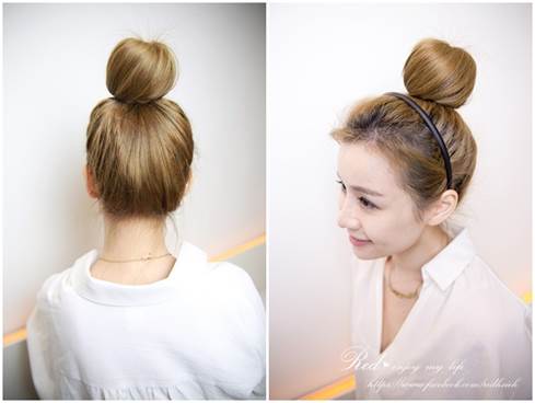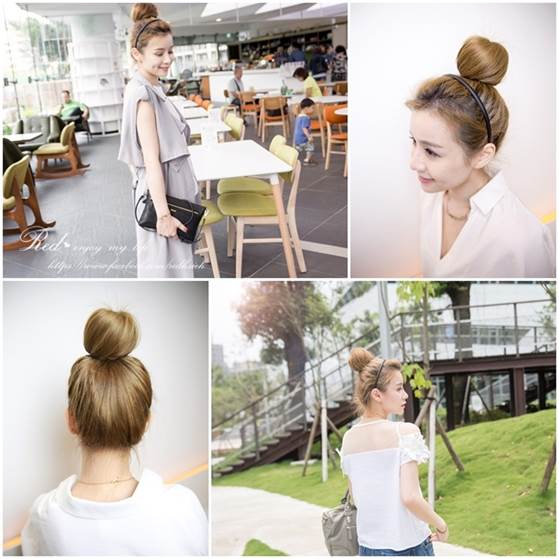 丸子頭是很好搭且乾爽的髮型,和髮帶也好match♥
