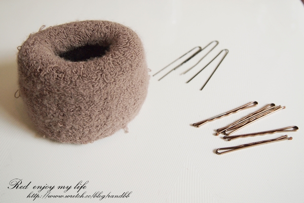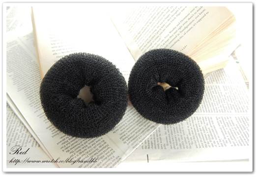 頭髮比較細滑的~有時侯綁太快就容易露出厚髮帶大家要注意喔…像剛剛影片其實就有點小走光(///▽///)所以對症下藥~~~後來看到逛到還有賣魔鬼粘加強版的甜甜圈就又買了這個: