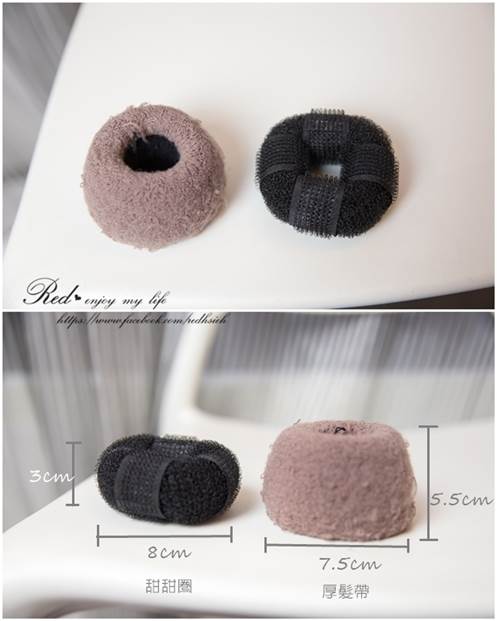 整個高了2.5CM所以綁起來當然比較高圓!所以買不到厚髮帶的,也能試試把兩個甜甜圈疊在一起增高綁看看喔~