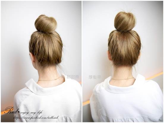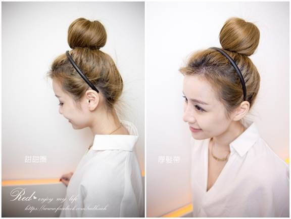 因為有厚髮帶(甜甜圈)藏在丸子頭裡,所以綁起來的包包頭就可以輕鬆的比較高也比較大顆很多噢!綁法就是先綁馬尾後再套入厚髮帶(甜甜圈), 然後再用馬尾包住藏好厚髮帶(甜甜圈),用毛夾和U型夾固定住就大公告成!! 來回顧看之前有錄的影片比較清楚↓↓↓