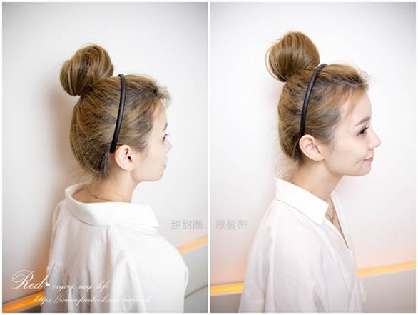 我本身因髮量不多且偏較細軟, 所以丸子頭有用厚髮帶撐場感覺有份量許多