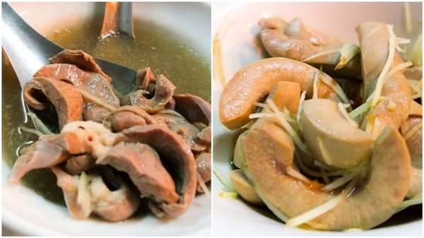 窩客「Milly貪吃鬼。大胃米粒」推薦:切成薄片的豬心易熟,燙久易老,阿文老闆做法則是放在鋁杯隔水加熱,燙熟再盛盤,掌握剛剛好的時機點,等到客人品嚐時,熟度恰恰好,湯頭帶點淡淡中藥味,盛夏時刻,天氣雖熱,但喝起來的感覺真舒服。最後則是豬肝,我們也是點做乾的麻油口味,味道吃起來粉嫩,豬肝特有的微苦味搭上麻油,形成特殊香氣,整個吃起來,我們覺得好像比哥哥阿明豬心還要略勝一籌,這種幸福滿足美味,已經很久沒有感受過。