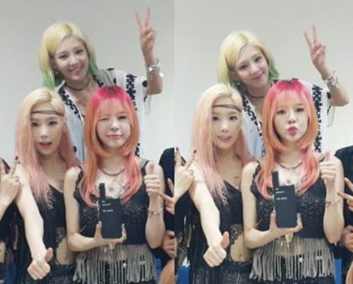 【圖片來源/소녀시대(Girls’ Generation) FB】雙色染就更不用說啦!韓國其實行之有年了,這次是上下雙色,無論金色下半綠,或像太妍這樣金帶粉,或是SUNNY的紅頭頂下半部全都淺橘,都很有活力四射的感覺說!