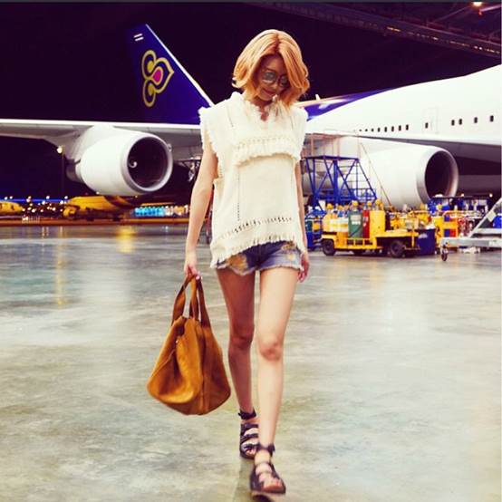 【圖片來源/sportschosun】而它的標準配備就是,白色簍空花織上衣+極短破破牛仔褲+駝色綁帶涼鞋,裡面可以搭白色小可愛,如果海邊裡面就穿比基尼,真的是完全不會出錯的喔!所以今夏至少穿一套這樣出門吧!(結果阿酥衣櫃都有ㄟ~太好哩!)