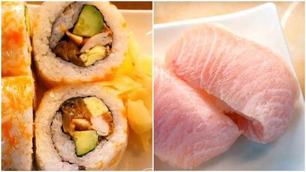 窩客「老K」推薦:花壽司的外面撒了滿多的蝦卵,裏面有玉子燒、海苔、蟹腳棒、鰻魚、滷洋蔥、小黃瓜等等食材,壽司米滿Q彈的配上這些食材,Q、軟、嫩、脆等多種口感,還有甜甜的美乃滋的搭配還滿好吃的,而且非常的有飽足感,有兼顧到吃飽跟美味。紅甘是今天老K最喜歡的,肉質帶點微脆的口感,能夠感受到魚的鮮甜,連吃二種魚都很新鮮呢,難怪生意滿好的呢。