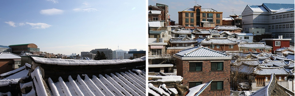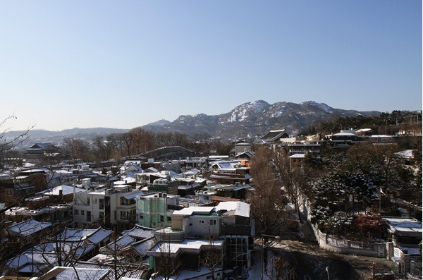 從北亭路左邊可以眺望櫛比鱗次的韓屋屋瓦及景福宮、仁王山、青瓦臺