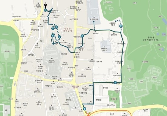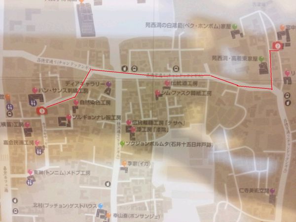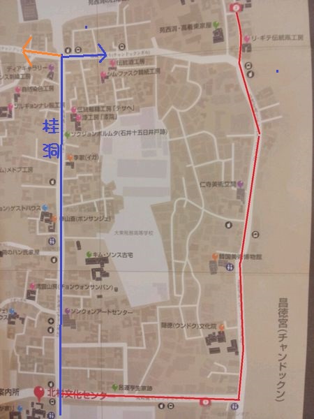 循著昌德宮石牆路走,經過佛教美術館及傳統風箏工房,大約走到小路盡頭
