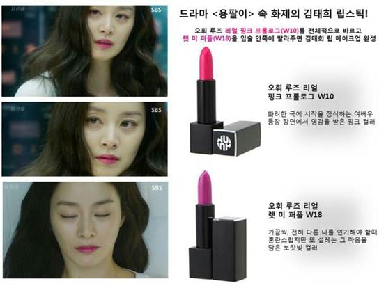 阿酥上網查了查,看了韓國美妝官網的文章確定是오휘(O HUI) 的唇膏!應該是Rouge Real,而且W18紫羅蘭色是金泰熙選色喔!(然後黃護士是用唇筆幫她畫的~所以看不到唇膏啦~~~~),所以想要擁有跟金泰熙一樣顯臉白皙的唇彩可以給他來一支!!!