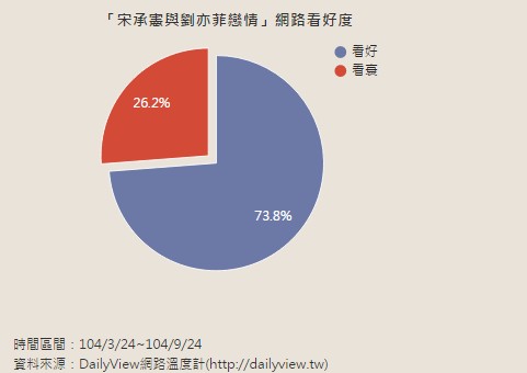 雙方都擁有大批粉絲的宋承憲歐巴和仙女劉亦菲,究竟網友對這段戀情的看好度是多少呢?我們藉由網路聲量的正面聲量與負面聲量作出看好度調查,發現網友們還是挺宋劉戀的居多,畢竟看著他們實在是很賞心悅目啊~本日精采內容、圖表數據,請看DailyView網路溫度計http://dailyview.tw/Daily/2015/09/27【鎖定更多精采報導,請上DailyView 網路溫度計官網:http://dailyview.tw】