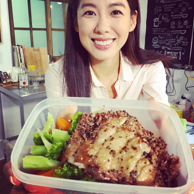 「少吃外食」,並公開一周美味吃不胖料理,這樣吃不僅不易發胖,還有滿滿的健康與營養。她在書中秀出一週早、午、晚餐範本,(每一道小編都覺得很好吃,吃起來一定很開心)。她還貼心提供一些點心時間的輕食選擇,以及自己做水果茶,她笑說:「我以前也很愛喝飲料,但是有時候看一杯也要好幾十塊,不如回家自己做,喜歡喝奶茶也可以自己泡,不加糖也很好。」因此她也培養出自己動手做便當的習慣。