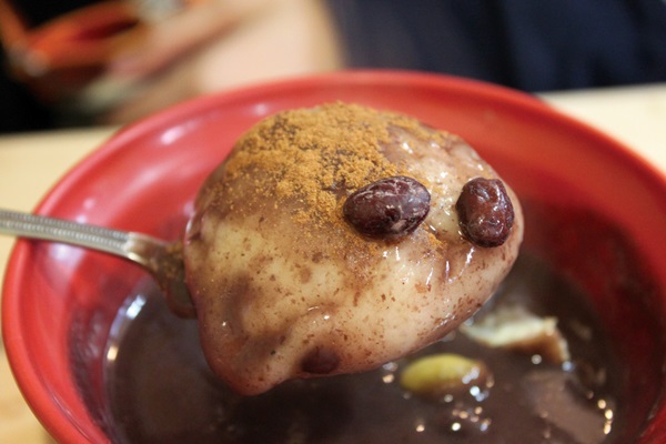 如果要煮甜紅豆粥,首要條件就是紅豆要選的好。這裡使用的紅豆因為沒有標明原產地,所以不知道是國內產還是進口的, 但是因為生意好,時常都可以吃到新鮮可口的紅豆粥。固定放入粥中的栗子煮得口感鬆軟,中和了紅豆粥的甜味,口感也更加細緻高雅。細細咀嚼座落在中央的銀杏,會覺得身體都健康了起來。吃到稍微有點膩口時,肉桂香氣正好可以提供不同的清爽風味。紅豆粥吃到一半時,正好看到露出軟嫩臉龐的年糕,口感Q 彈、非常好吃。雖然不愛吃甜食的人可能會有點排斥甜紅豆粥,但是這裡的紅豆粥不會過於死甜,適中的甜味非常適合所有人品嚐。