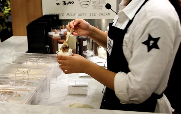 SOFTREE 林蔭大道本店的裝潢時尚,幹練的風格吸引大眾的目光。招牌上有可愛的乳牛與英文店名,內部則以乳牛的白與黑為主題,打造出乾淨簡潔的風格。店員的制服也是以黑白兩色為主,看起來非常的清爽乾淨。雖然菜單上都是英文,但是搭配手繪圖案,一眼就能理解是什麼口味。如果不知道是什麼的話,只要點餐時跟店員詢問即可。因為是人氣名店,多少需要花一點時間排隊,這時候不要發呆,先研究菜單想想要吃什麼,也別有一番趣味呢!店名| SOFTREE HOMEPAGE | www.softree.or.kr