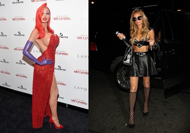 最後,當然要有萬聖節女王Heidi Klum,這打扮看似簡單,但其實她花了很多時間化妝,臉部與胸部都是化妝的結果,他打扮成卡通人物Jessica Rabbit,所以為了創造卡通裡大奶細腰的比例,她花了很多時間精力,找來專業的特效化妝團隊,才有如此卡通的效果,我永遠都會期待Heidi每年的萬聖節裝扮。圖片來自GFY及Vogue
