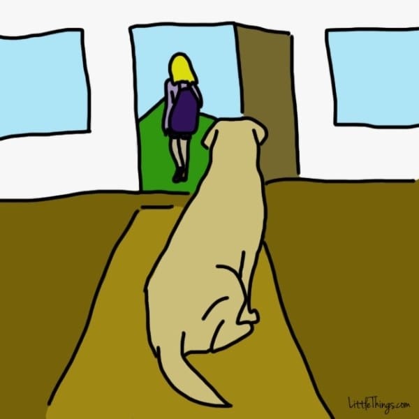 主人出門後,狗兒便回到牠的窩,其實代表著牠「接受你的離去」,因為牠知道你一定還會再回來。這代表狗兒對主人是有信心的,牠愛你並且相信裡絕對不會離開牠。