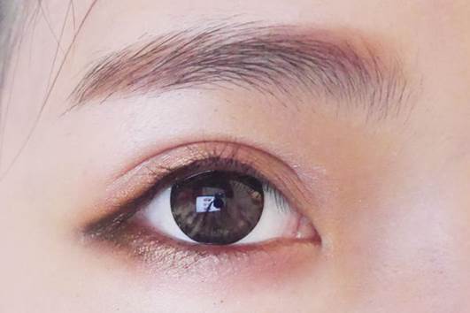 用帶點金色的棕色在眼尾ㄑ部分畫上,製造一點無辜感