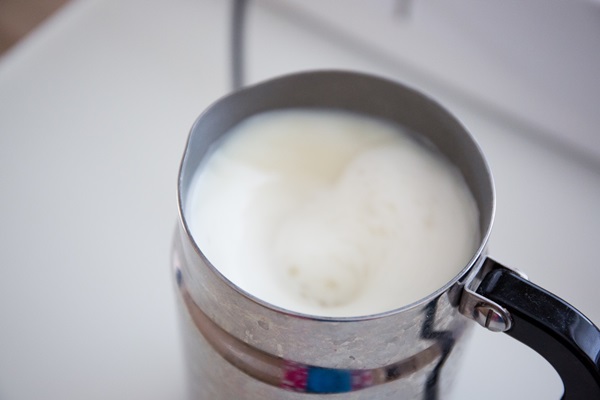 如果家中有奶泡機,直接將豆漿用奶泡機加熱起泡