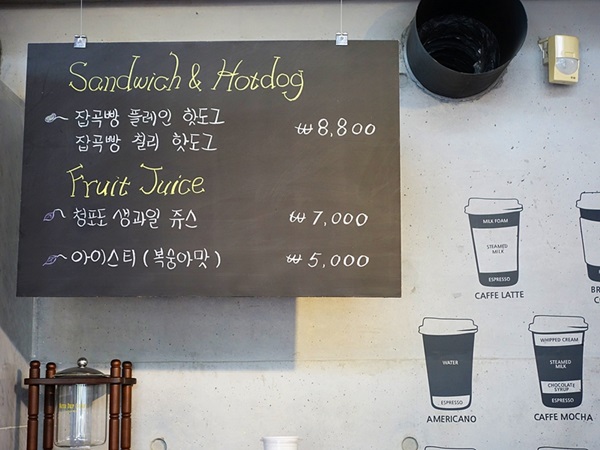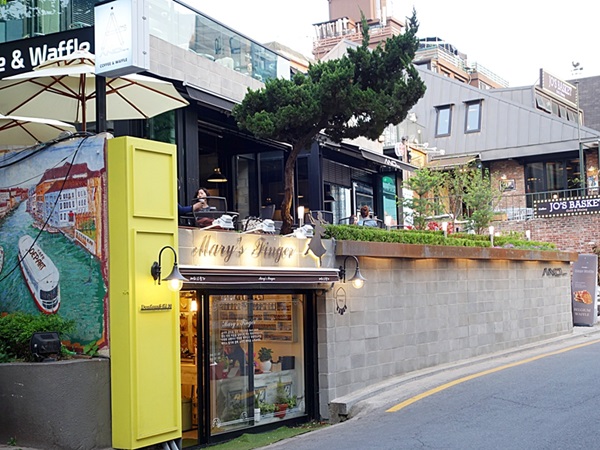 韓國藝人中,有不少會幫父母親開店 做生意,除了讓老爸老媽很有面子,也讓粉絲們多了一個可以聚會的場 所。在這聚集許多文藝劇場的惠化大學 路上,就有韓國天團 BIGBANG 成員勝利 為媽媽開的一間咖啡店「AND here」。 從外觀看去有個貨櫃屋,配上閃亮 LED 燈管,還以為是 DJ 室 呢(結果是外帶 區)!室外露台在陽光午後或是星空滿佈 的夜晚,有許多客人喜歡坐在這兒享受悠 閒片刻。而室內走得也是簡單風格,水泥 色的牆面和地板,以不同設計感的桌椅配 置做為空間區隔;店內個性化的擺設、玻璃上的韓文卡典字,還有 2 樓的影音室,整體氛圍很有 BIGBANG 音樂的風格,不 那麼華麗高貴,卻獨具特色。店裡有個突兀的擺設「紅色信箱」,總 覺得好像可以讓 VIP 們(BIGBANG 的粉 絲、歌迷稱為 VIP)把留言紙、信件投進 去,就能傳達給 BIGBANG 的成員們 ?! 如 果是這樣的概念好像也很不錯!