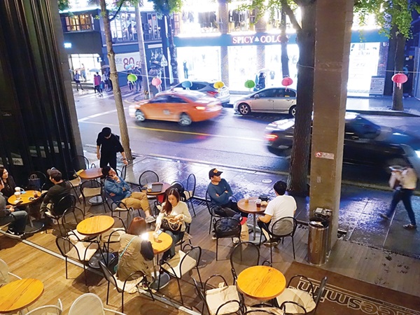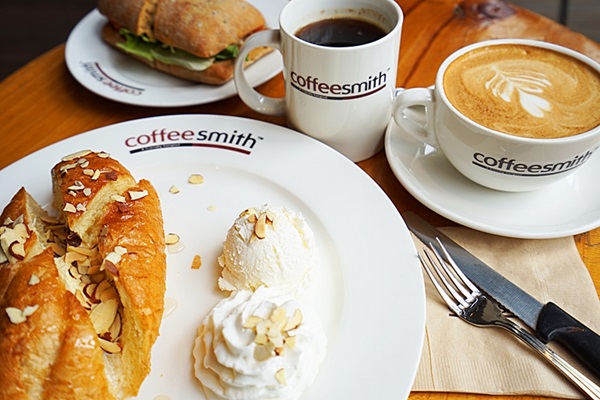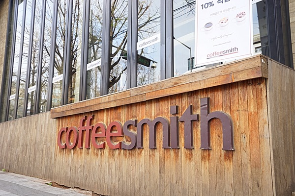 去韓國的親姑們,有沒有一間店讓你每次回韓國就想進去坐 坐,一種懷念的氛 圍、一定要打卡 報到的潛儀 式?我 有,我去過重複 性最高的店應該就是位於新沙洞林 蔭街裡的「coffeesmith」,店名中「smith」在英文裡是「工匠」的意 思,「coffeesmith」以為熱愛咖啡 的顧客煮出一杯獨具匠心的大師級咖 啡飲品為理念,混合曼特寧、哥倫比亞、巴西等多種優質咖啡豆調配出專屬於「coffeesmith」。點杯咖 啡、找個座 位,然後進入放 空模式;看看路人,也被路人看。偶爾 我也會帶著電腦去那寫寫文章、整理照 片,將自己完全融入首爾人的生活,喝 的不只是咖啡氣味,而是享受當下的氣 氛與片刻屬於自己的時光。新沙洞分店 的格局透視性很強,以挑高、挖空的視 覺,保留建築原始結構,工業風打造出 極具個性的格調。一整片落地玻璃讓 1、 2 樓的座位都極具穿透感,成為讓人想 一直待著的寬廣空間。由於座落在首爾 時尚潮流前端的江南區,店內總能看到 時下最新潮流裝扮,型男美女賞心悅目 啊(咦?不是要介紹咖咖店,我離題了 嗎?)!正也因為地點和空間的優勢,新沙洞 分店常有活動舉行,像 V 歐妮就曾遇過 有哈雷車展,把整台哈雷放到店裡 2 樓 展示;也有遇過頂級保養品的新品體驗 會,許多貴婦名媛們穿梭其中,重點是現場安排的男服務員、美膚顧問都好顧目珠(又離題⋯⋯)「coffeesmith」除了咖啡、糕點, 還有提供酒精性飲料,入夜,燈光、氣 氛都到位後,不單單是咖啡店,還很有 LOUNGE BAR 的感覺!另一間弘大分店我也蠻常去歇腳的, 這裡應該讓許多韓劇迷感到熟悉 吧?《沒關係,是愛情啊!》(至J-叫 사랑 이0)裡朴曉光(李光洙飾)&吳少女(李晟京 飾)打工的咖啡店就在這裡取 景的,還有《看見味道的少女》(甘H 量 旦台 소吽)崔武閣(朴有天 飾)&崔 恩雪(申世京 飾)約會的地點。睹景思 情,因此這裡常有來自各國的迷哥迷姐 們來朝聖,而且因為位於弘益大學校園 旁,所以也是學生們約會、討論功課的 常去地點,和新沙洞店有著略略不同的 氣洞息。