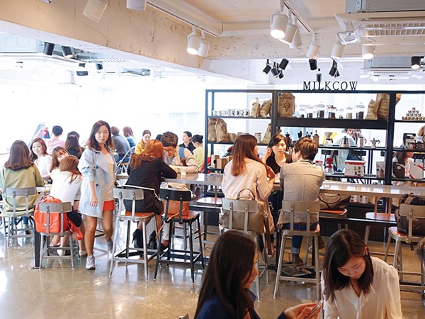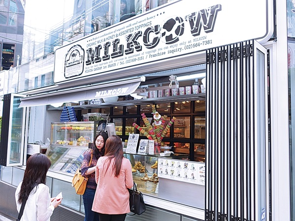 不得不承認,有時候走進一間店可能是因為它的代言人或 是裝潢。這些 年,擄獲不少少女 心、熟女情的那位李鐘 碩,正是 「MILKCOW」的代言人,看他在 廣告上拿著冰淇淋幸福的樣子,來 去光顧一下!位於江南站附近的分 店,1 樓有冰淇淋櫃和甜品、糕點的 販賣,2、3 樓都是用餐空間,還有個頂樓露天空間,寬敞舒適,在午後曬 日光或夜晚賞月光都很不錯,不少韓國年輕人喜歡飯後來這吃份冰淇淋,邊約會、聊天。有追韓星李昇基的戲迷應該 也會發現,江南分店就是韓劇《你被包圍》劇中的場景之一喔!