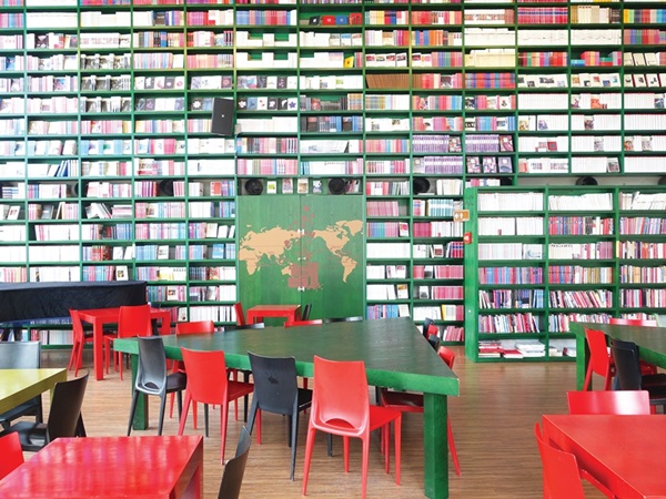 其他空間就是書店了,當代所有類型的書籍,像是美術、音樂、文學、休閒等等,分門別類設有各自的展區,書籍與建築設計巧妙配合同步演出,看似放滿所有可用空間卻又能保留部份位置讓閱讀者使用,裡面也設有可愛的童書區,鼓勵小朋友培養閱讀習慣,成為小書蟲囉!