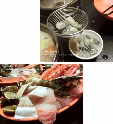 食家anchi0117分享:海鮮配料部分相當豐富,一次就提供三種魚類(鮭魚,鯛魚,旗魚)。還有一碗鮮蚵,最特別海有一顆生蠔,鮮蚵不會有過腥的腥味,很多汁。