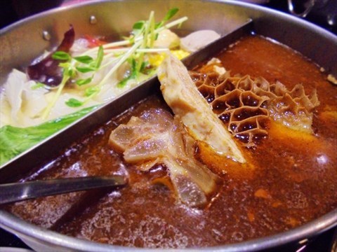 從外在裝潢等級來看以為是多人火鍋,沒想到是自己一人也可吃的個人鍋。主打單人麻辣窯燒鍋,一個人也可以享用鴛鴦鍋,嚐到兩種風味。食家栗 維尼分享:比起麻辣鍋,更喜歡湯頭濃郁的龍骨湯。湯頭雖濃郁,但喝到見底也不覺得過膩,或舌頭乾澀。