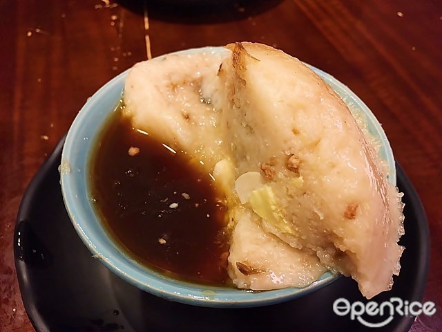 ClaiRe Lin119推薦:通伯台南碗粿。碗粿+香菇湯的特殊組合,我只有在這裡吃到過。碗粿$35,是老闆娘以手工磨製的在來米漿,包裹著豬肉、鹹蛋黃、油蔥製作而成。我最喜歡這種呈深褐色,充滿香氣及彈性的碗粿,反倒不喜歡白色偏軟的那種。使用傳統蒸籠蒸熟之後一碗碗飽滿的碗粿,淋上特製醬油膏及蒜泥便能送到客人面前。叉子就這樣豪邁地插在上頭。用叉子劃上幾畫分成小塊,感覺碗粿相當扎實,但入口卻又吃得出綿密口感。醬油膏滑亮鹹香,均勻包覆碗粿呈現迷人光澤,雖是號稱台南碗粿,不過並不像台南口味那麼甜。碗粿本身有入味,醬汁也不會太鹹,味道剛好。…(繼續閱讀)