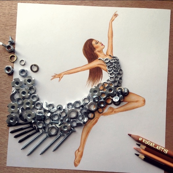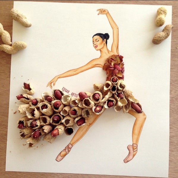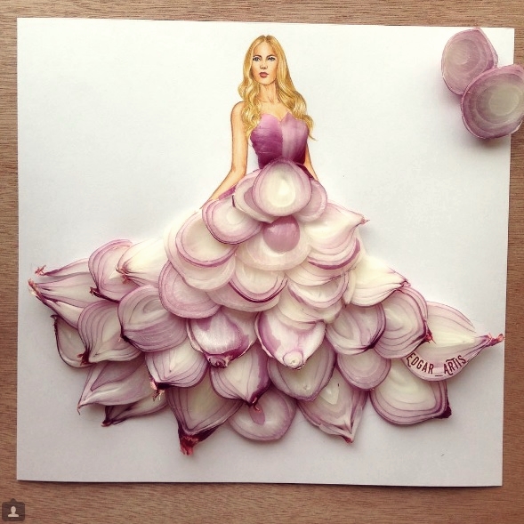 巧克力醬、洋蔥都能拿來作畫?這是真的!看過很多服裝畫,但這一位藝術家的創作,看過你就絕對就不會忘。亞美尼亞藝術家Edgar Artis利用生活中隨手可見的素材,創作出一系列美麗的服裝畫,在Instagram上也常可以看見他發表新作。