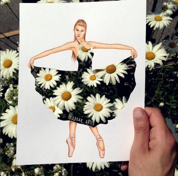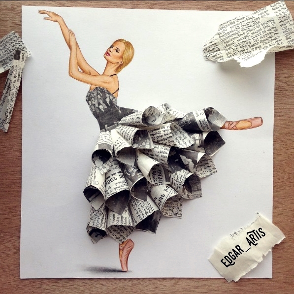 結合了剪紙技巧,Edgar Artis發揮了獨特的創意,將剪紙技術風景、物品相互結合,創作出一件件令人讚嘆不已的服裝,隨手可見的風景,在他的創作巧手下,都變成了服裝上的美麗印花,而且厲害的是,毫無違和感!