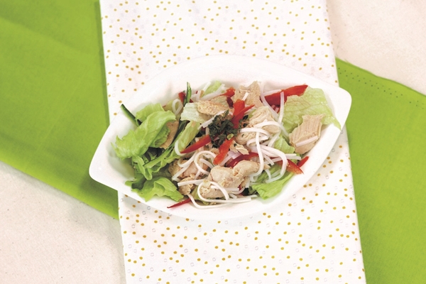 4. 將所有食材均勻混合後,放上荷蘭芹即可。推薦食材:粗米粉