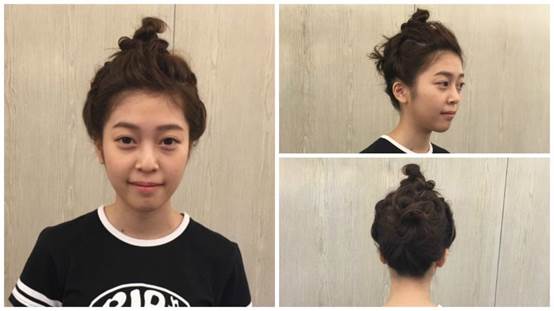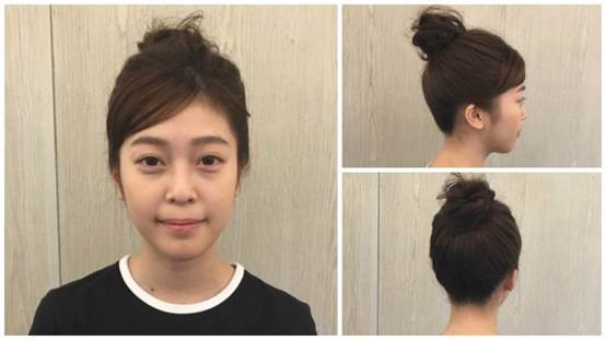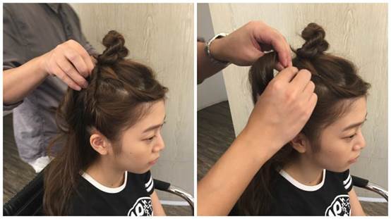 Tips:固定僅運用黑髮夾、固定造型膨鬆感可用U 型夾。整體髮流都以丸子頭為中心,編髮能增添層次感,打造更獨特的丸子頭。