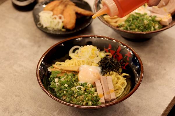 聽說整碗熱量只有一般拉麵的2/3,加上特製的油與醬料代替湯頭調味,像是乾麵的吃法,卻又多上滿滿配料,