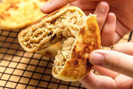 人手裡的永遠是焦香有嚼勁的美味。店裡的餡餅口味不多,但每一種都是主打,鹹肉口味的餡餅有3 種,包括青蔥、洋蔥各自搭配牛肉豬肉,另外還有蘿蔔絲餡餅,都是小圓餅形狀。