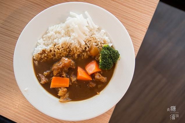 口感濃密且下飯,不過咖哩中的豬肉味較重,吃到後來容易膩,另外當天吃到的白米飯我則覺得有些軟,使得整體口感過於軟黏。