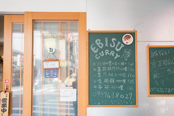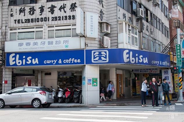 Ebisu咖哩 curry & coffee 就位在寧波西街上,從南門市場走來約五分鐘路程,深藍色的招牌挺顯眼的。