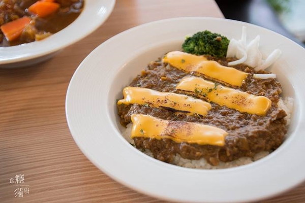 乾咖哩是Ebisu店內人氣最高的餐點,於是我們點了兩份,一份有加上起司、一份則是原味。