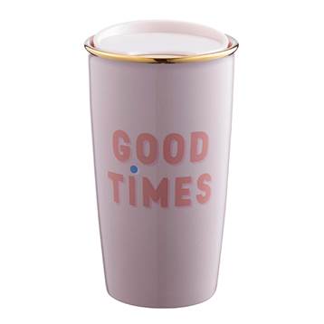 整體粉色調性,結合美好標語、真金杯緣,質感細緻,俏皮宣告每天都要全心擁抱美好時光。