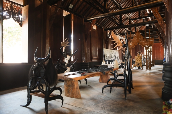 其名 黑屋博物館,主要原料為柚木構建且每個房屋都是黑色,又因建築風格像寺廟而被世人稱為黑廟。裏面展出的是泰國鬼才藝術家Thawan Duchanee個人珍貴的藝術收藏品,他利用遠古時代的獸骨,動物的皮毛,原始民族的獵殺工具,古董和標本等,用現代藝術手法融合成各種藝術品,因此黑屋博物館也被戲稱為“地獄”。