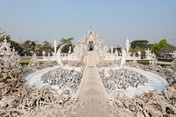 正名為「白龍寺」,當地人稱為「靈光寺」,是泰國知名藝術家Chalermchai Kositpipat的作品,至今仍持續建造中,不同於泰國傳統金碧輝煌的寺廟,”白廟”以白色為基底,象徵著佛陀的純潔與智慧。整座園區雕工華麗細緻,其中的壁畫也融入了許多現代元素,是一座佛教與藝術互相結合的寺廟,比起一般廟宇,白廟更是一件浩大的藝術品。