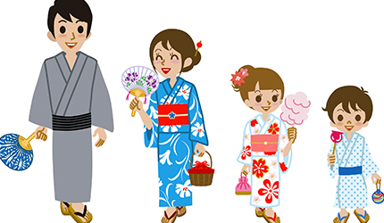 至於浴衣,其實也是和服的一種,是以綿為材質的簡化版和服。由於穿浴衣只單穿一件,方便又涼爽,所以在夏天的廟會和花火大會…等等比較休閒的活動時,很多年輕人都會穿上浴衣赴會。