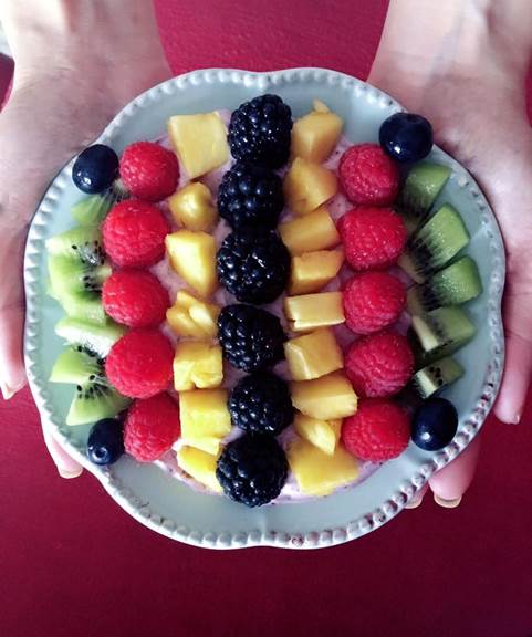 ▲穆熙妍自製的希臘優格巴西莓果碗,只要三分鐘就能完成。