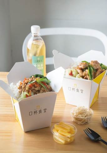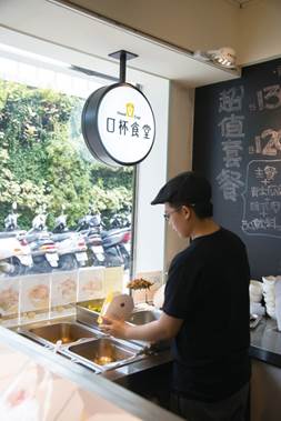 由於長年在國外工作,特別想念媽媽手裡家常菜的味道,老闆回台後便決定將樸實而美好的台式料理做成便當,並發揮自身食品設計的專長,以口杯盛裝飯菜,不但極具創意,也相當方便吃!老闆說:「這個設計除了方便拿在手上吃,主餐也料理成一口大小,方便入口。」中午12點,口杯食堂瞬間湧入飢腸轆轆的人潮,而看中口杯便當的便利性,許多大型研討會也紛紛上門合作,讓口杯食堂更站穩腳步,除了桃園分店,未來也預計再開設分店,讓更多人享受到這份創意便當的美味與樂趣。