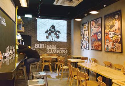 本土連鎖速食品牌頂呱呱引進韓國休閒快餐BOBBYBOX,將傳統韓式飯食以新樣貌呈現。這裡以飯為核心產品,改良韓國家庭中常見的韓食與拌飯,並融合傳統文化以及時尚潮流!以外食族、上班族為主要的對象,BOBBYBOX放入韓國桌上常見的多種類小菜,濃縮進餐盒中,並加上韓國特有的醬料,拌一拌就可以大快朵頤,十分方便。