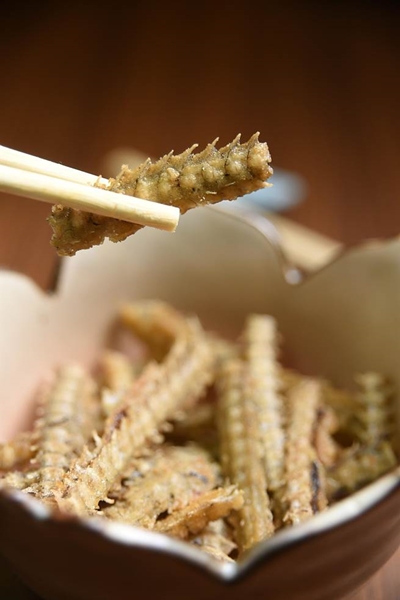 酥炸的鰻魚骨,口感像餅乾,讓人口齒留香!