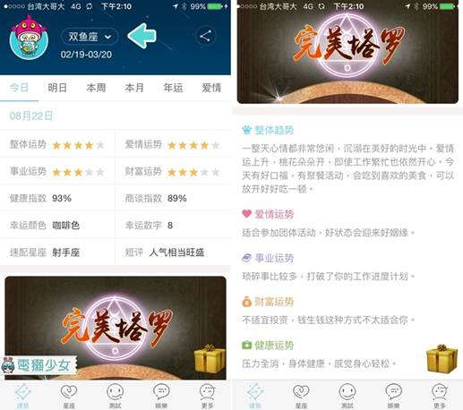 星座、塔羅、心理測驗什麼都來~不知不覺就玩了半小時啊啊~
