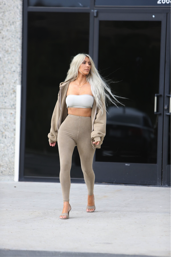 2018年駝趾正流行!(或至少對金來說穿什麼都理所當然的霸氣才是她駕馭服裝的真正秘訣,你能夠想像一個正常人穿上這件衣服上街嗎?不行,因為你在街上看到有人穿這樣,你就會想「那個人不是正常人」。)但至少色彩從鼻胃管進展到水泥牆壁。