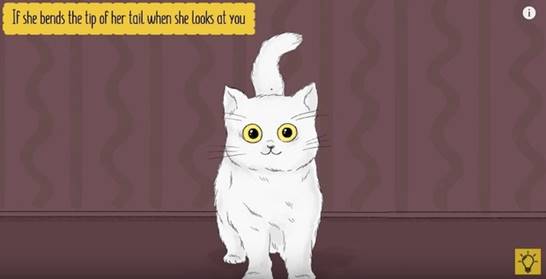 從貓的尾巴常常能看出貓咪當下的心情,當尾巴豎起只折頂端時,表示他對人的好奇與友善,或是想要跟你玩。